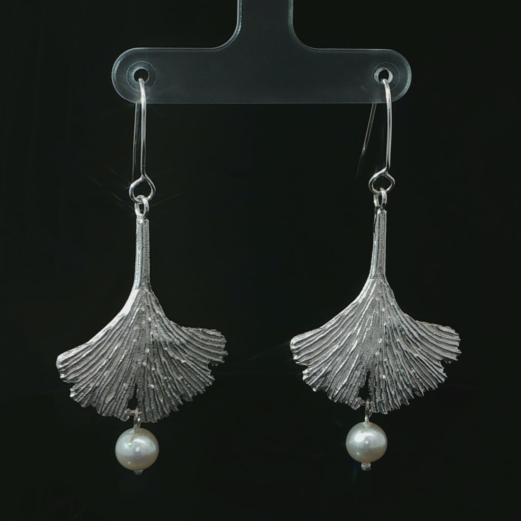 Silver Ginkgo Leaf Earrings